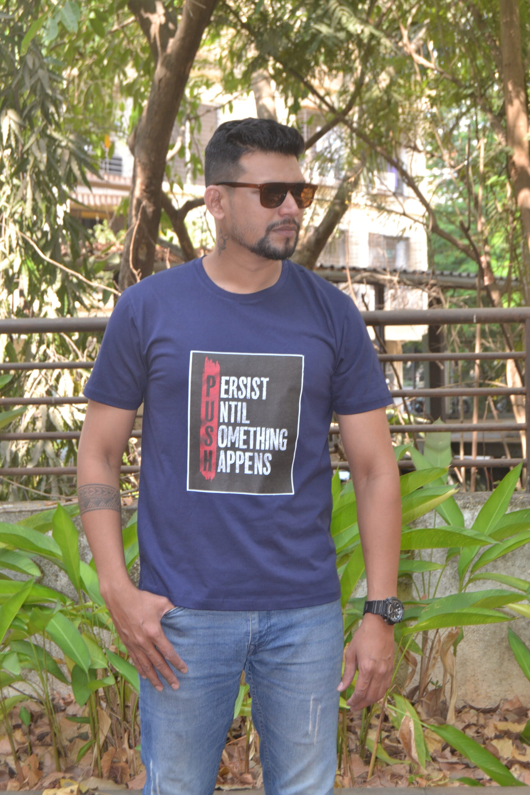This classic Navy BlueT-shirt features White print that adds a bold and stylish contrast to its minimal design. Crafted from soft, breathable cotton, it offers all-day comfort while exuding effortless charm. The vibrant red detailing makes a strong style statement, perfect for casual outings or everyday wear. Simple yet eye-catching, this T-shirt blends timeless elegance with a touch of modern flair.
